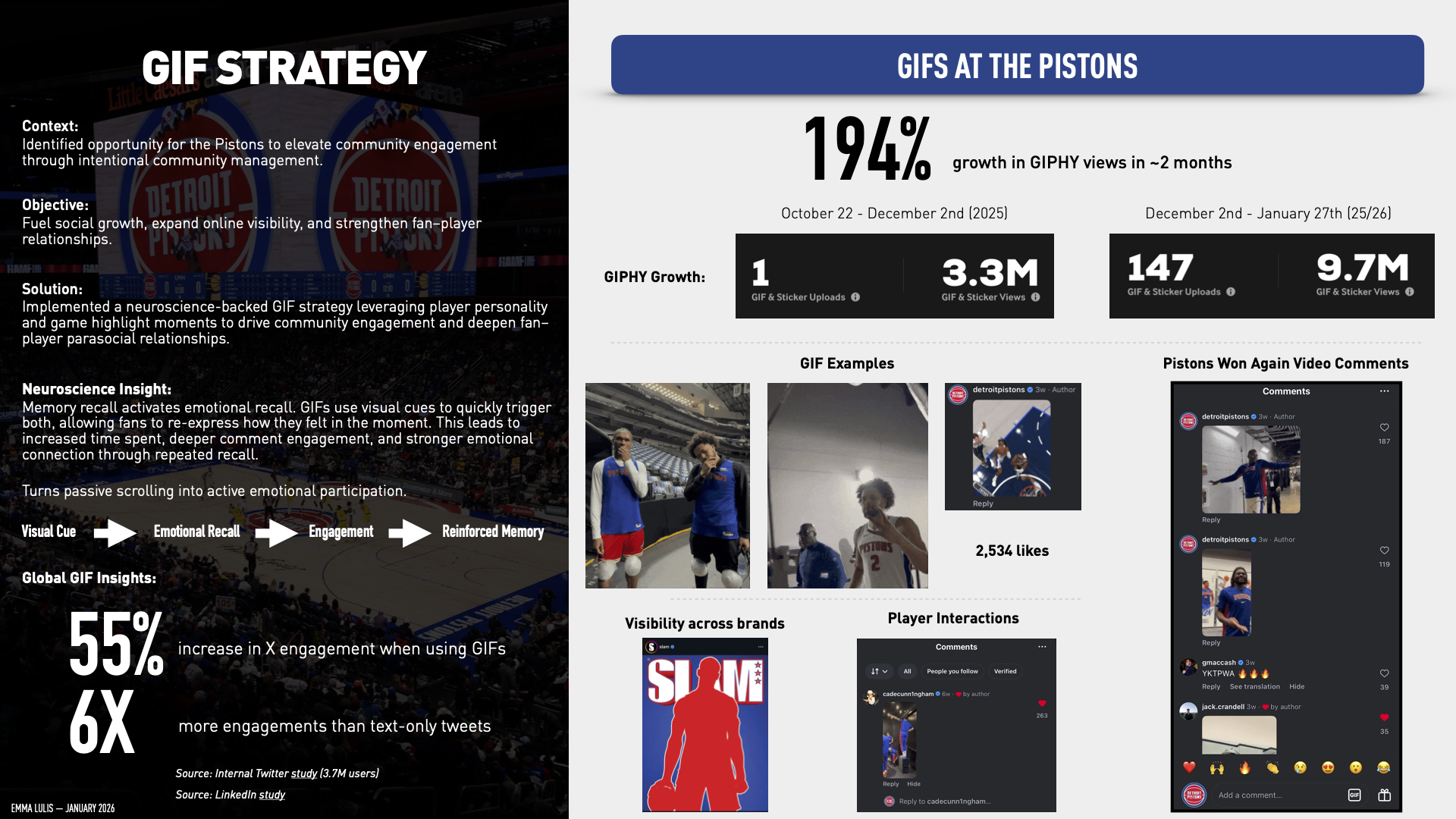Leveraged social media metrics to develop a GIF strategy within community management. Used a foundation in neuroscience to interpret audience behavior and guide more intentional engagement.